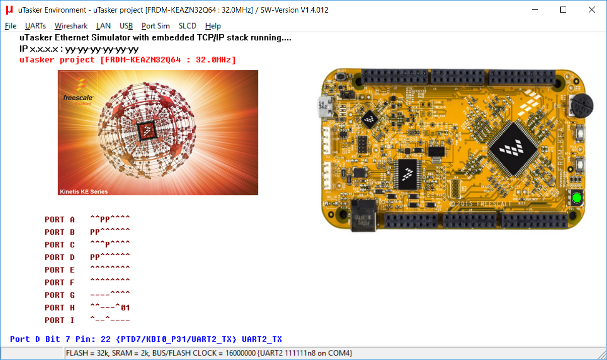 - uTaskerV1.4.12_BM_FRDM-KEAZN32Q64_2800.SREC KEA32 application with command-line menu on the virtual COM connection (at 115.2kBaud) [48.7k]. Linked to 0x2800, it can be loaded using the SREC loader. When the application is running the green LED blinks at 2.5Hz.