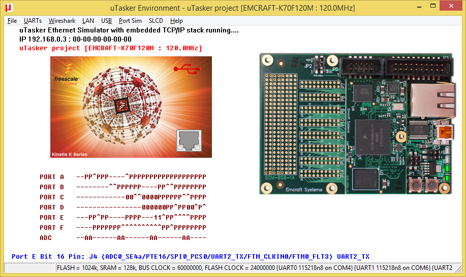 For reasons of scalability the µTasker also includes support so that projects developed for smaller devices can be immediately upgraded to the larger K70 and make use of extended DRAM or NAND. Alternatively, developments based on the EmCraft K70F120M - or a part of its original functionaity - can also be immediately transfered to smaller Kinetis devices if the need occurs.