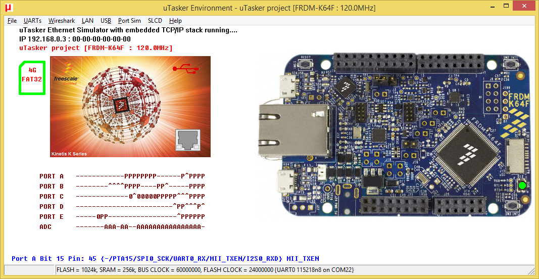 - uTaskerV1.4.12_FRDM-K64F_ETH_8000_AES256.bin [74.3k]: AES256 encrypted application that can be loaded using the secure KBOOT serial loader (either in UART or USB mode), including Ethernet operation (default IP 192.168.0.5) and various other functions.