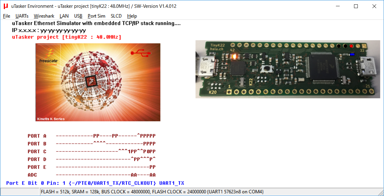 uTaskerV1.4.12_BM_tinyK22_8080.bin tinyK22 application with command-line menu on USB-CDC (virtual COM port) as well as on UART 1 (PTE0 and PTE1) at 115'200 Baud. The menu has various menu items, including the ability to switch to USB-UART bridge mode with end-to-end flow control.